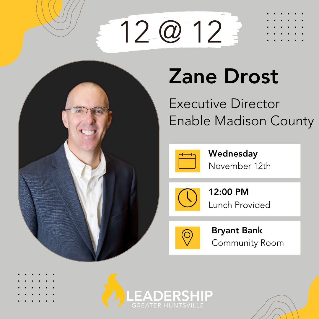 Zane currently serves as Executive Director of Enable Madison County, the nonprofit dedicated to enabling older adults and homebound residents in Huntsville to live independently, safely, and with dignity. Earlier, in leadership roles at Thrive Alabama, Downtown Rescue Mission, and Village of Promise, Zane made notable contributions—including bringing President George W. Bush to Huntsville and pioneering programmable giving strategies.